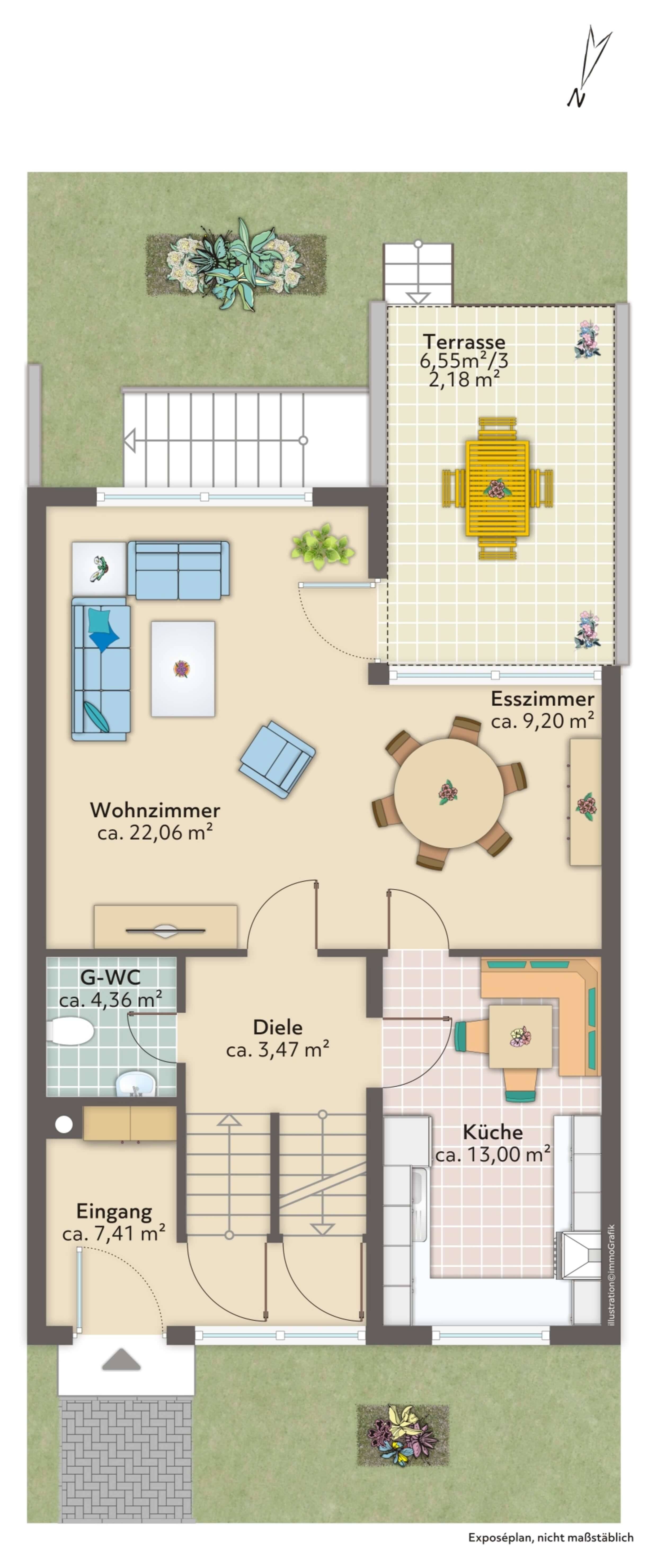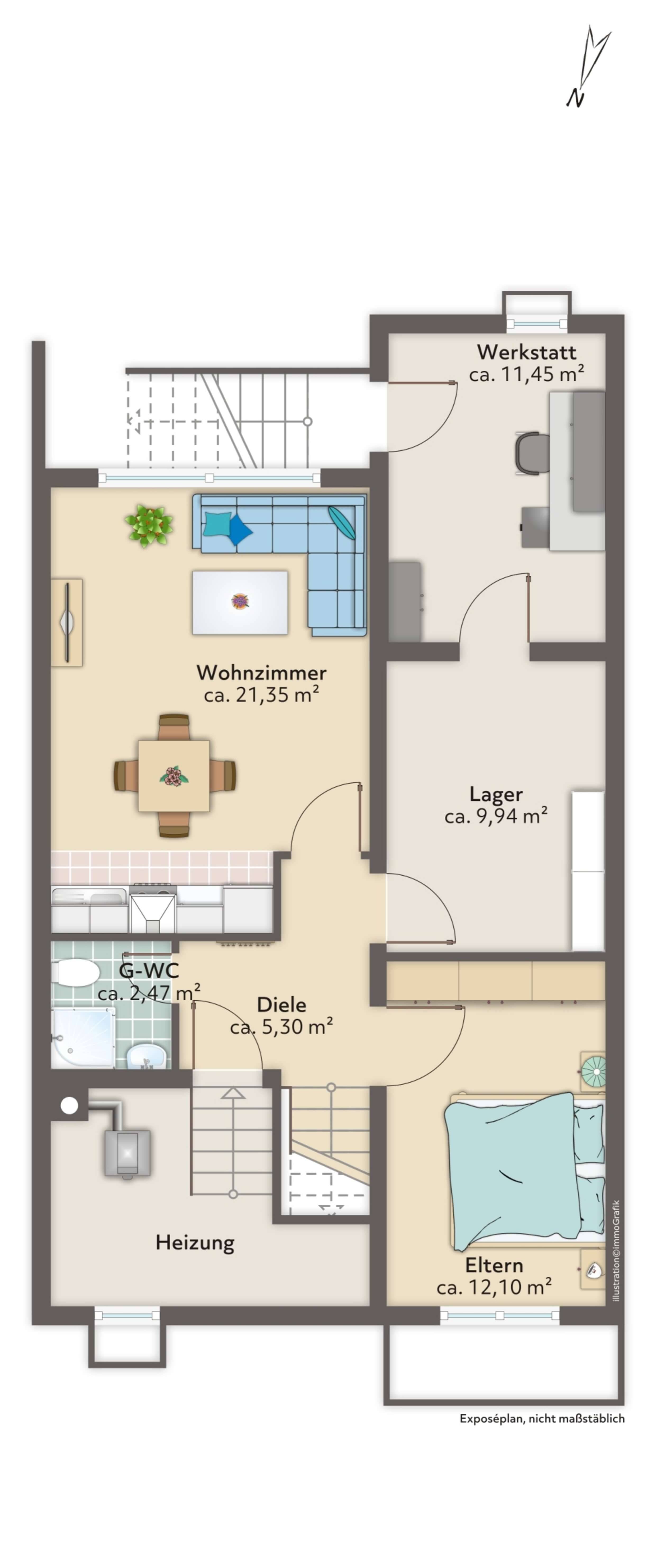 Nachweis-/Vermittlungsprovision: 3,57 % vom Kaufpreis incl. der gesetzlichen MwSt., verdient und fällig mit Abschluss eines notariellen Kaufvertrags, zahlbar vom Käufer. Ich habe einen entgeltpflichtigen Maklervertrag über den gleichen Provisionssatz mit dem Verkäufer abgeschlossen. Einrichtungsgegenstände sind als Gestaltungsideen zu sehen und nicht Teil des Kaufangebots, sofern nicht explizit als Kaufgegenstand benannt. Grundrisse sind nicht maßstabsgetreu. Die Informationen in Exposé und auf meiner Webseite ersetzen keine persönliche Beratung! Ich behalte mir das Recht vor, Änderungen oder Ergänzungen der bereitgestellten Informationen jederzeit vorzunehmen.