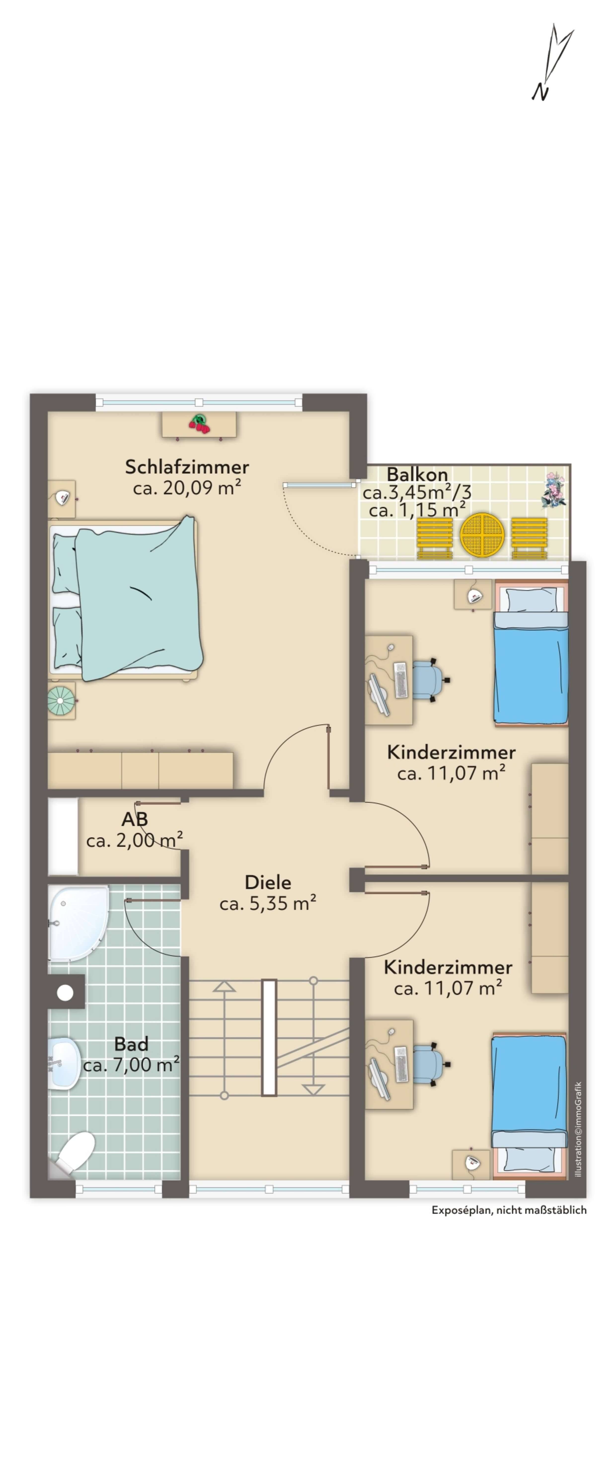 - Drei Schlafzimmer, Balkon, Abstellraum und modernes Bad im OG