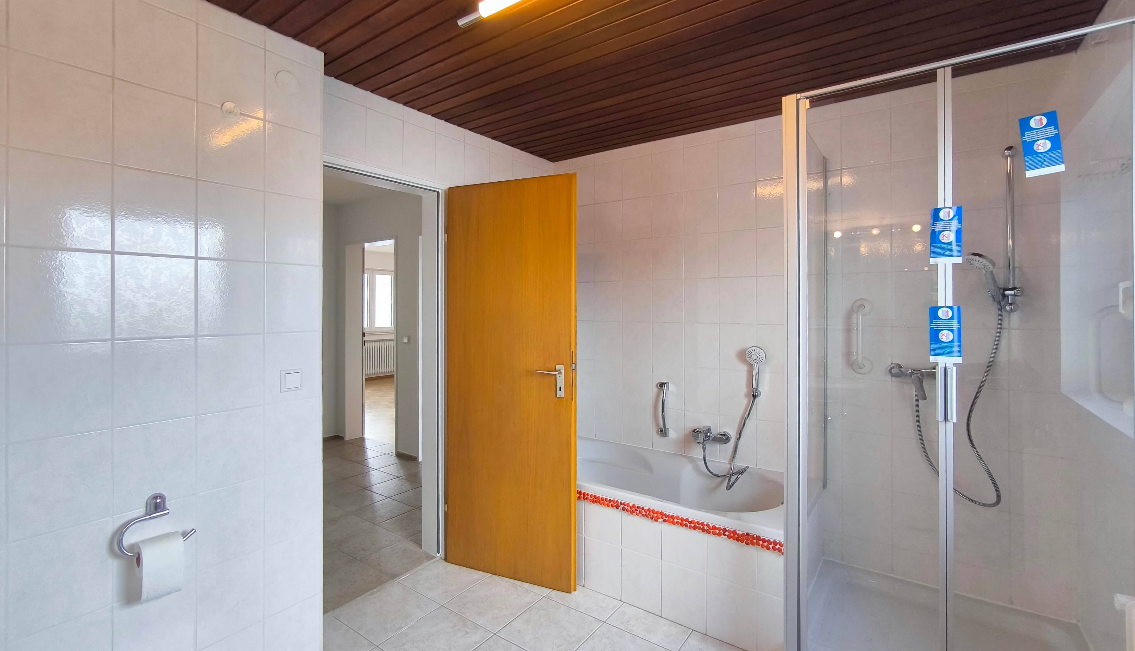 - Bad: Modernes, großes Tageslichtbad mit Doppelwaschtisch, Badewanne und Dusche